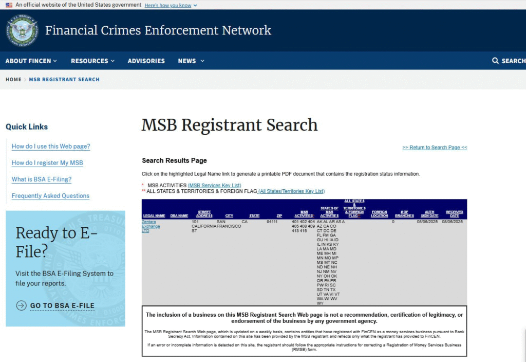 一方、私たちの Zentara Exchange LTD は、本年8月に審査を正式に通過し、MSBライセンスを取得しています。MSBの公式サイト上で、当社情報を直接検索・確認することができますので、これは最も透明性が高く、信頼できる確認方法と言えますでしょう。