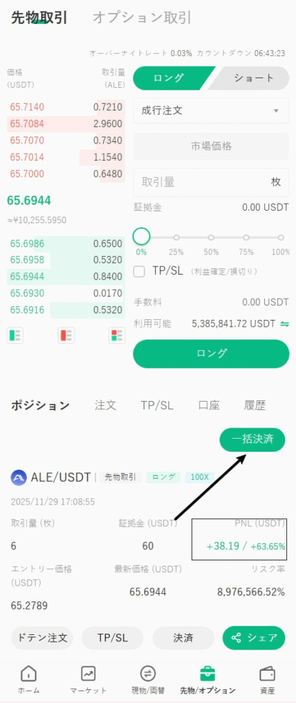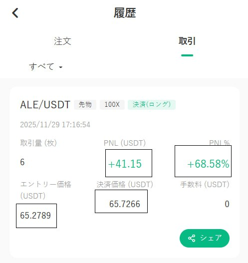 それでは、ここから本日の ALE ロングポジションのトレードを振り返っていきましょう。