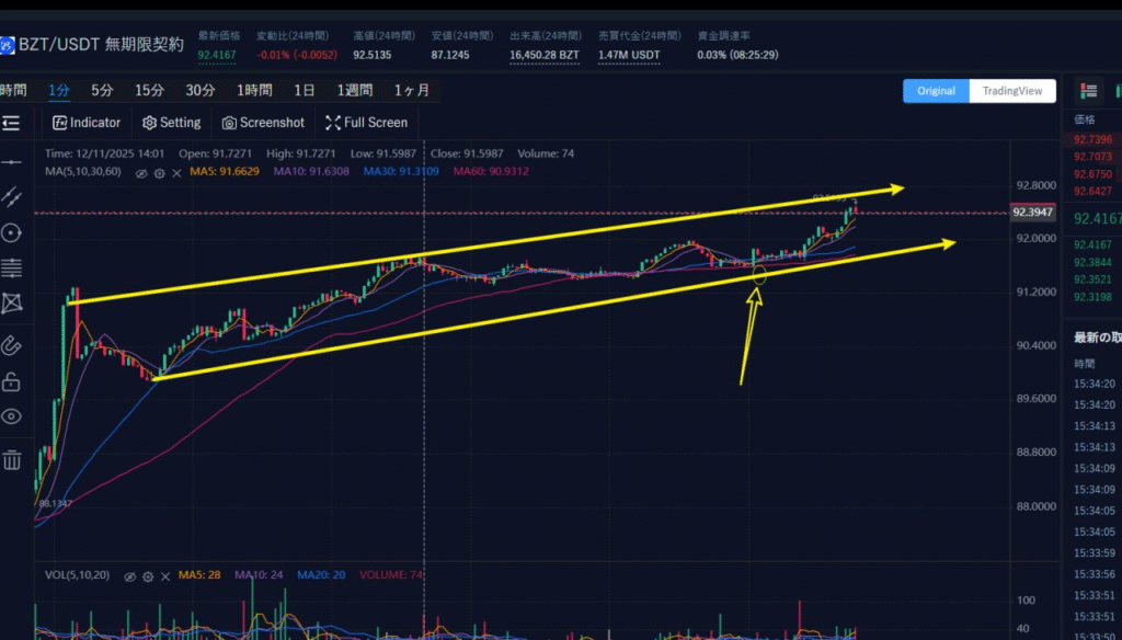 価格が下値に触れた後に反発した動きも、ロングを選択する根拠をさらに強めており、市場もこの構造変化に対して素早く反応しています。