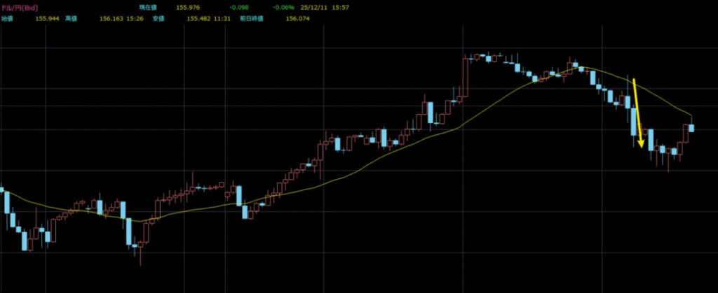 為替市場でのドル円の動きを見ると、会合結果の発表直後にドル円は156.67円から155.79円まで下落し、約0.88円の円高となりました。