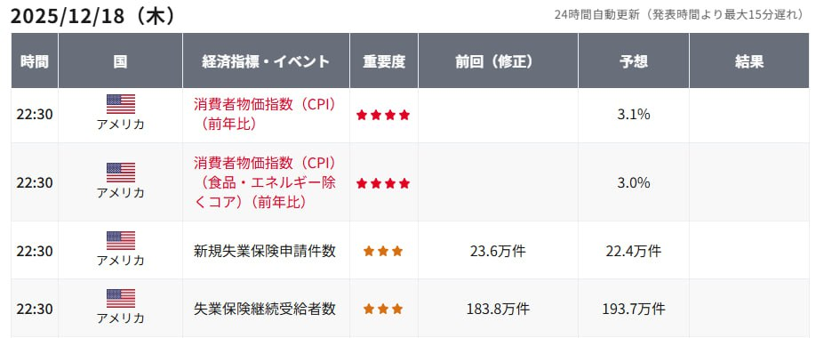 また、明日の夜には米国11月の消費者物価指数(CPI)の発表を控えており、これは現在、市場が最も注目している経済指標の一つと言えます。