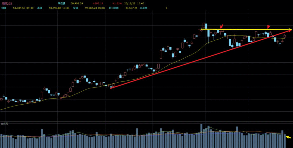 つまり、指数自体は上昇したものの、出来高の裏付けが乏しく、市場の勢いは決して強いとは言えません。