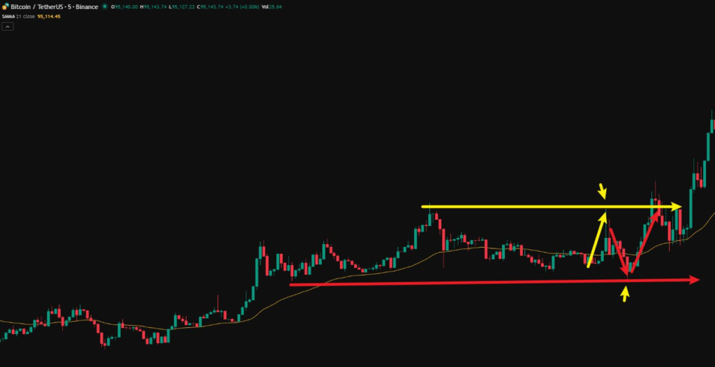 昨夜のCPI発表後のビットコインは、上昇してから下落し、その後に再び新高値を更新する展開となりました。