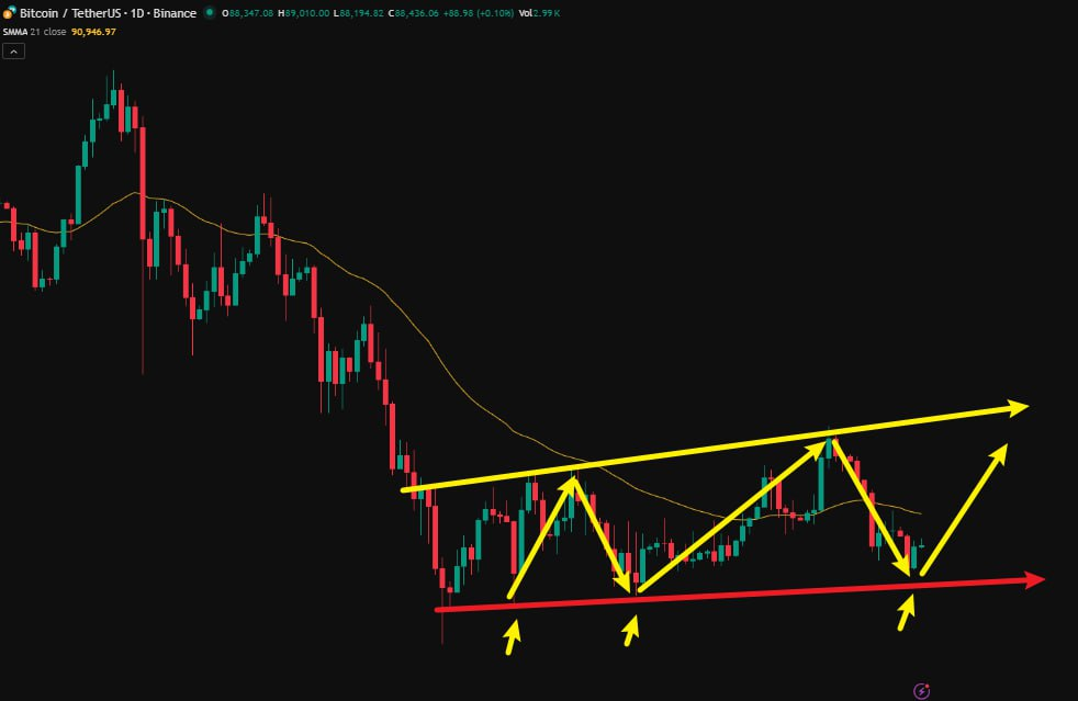この水準を明確に割り込まない限り、ビットコインは全体として底値圏での揉み合いを継続し、レンジ内でエネルギーを蓄積できる状態にあります。