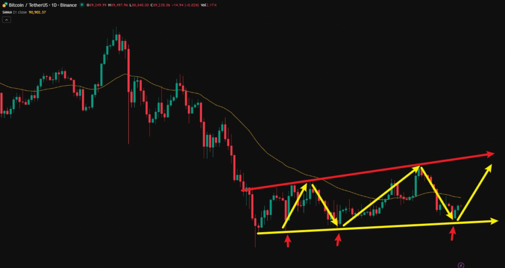 昨夜、価格はサポートである87,791ドルまで下落した後、反発に転じ、最大で88,476ドルまで上昇しました。