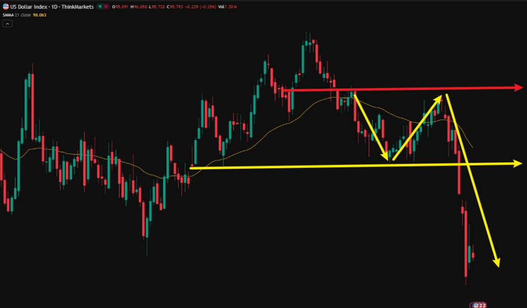 ドル指数の日足チャートを見ると、直近で継続的な下落が確認できます。
