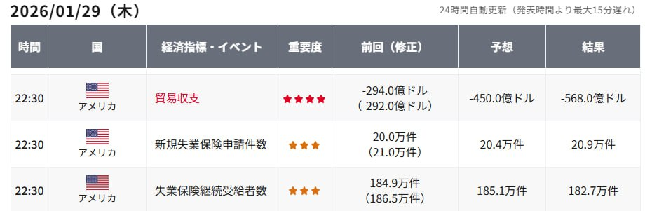 昨夜の経済指標発表直後、