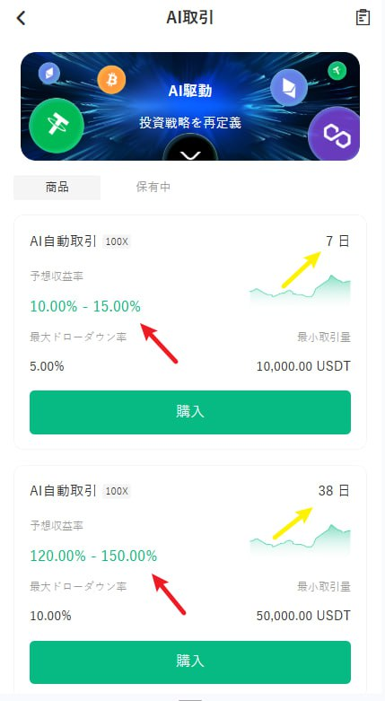 例えば、10,000ドルの投資プランであれば、運用サイクルは7営業日で、収益率は10%〜15%を見込んでいます。
