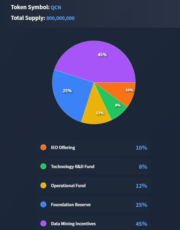 ホワイトペーパーを見ればわかる通り、Quantum City Network(QCN)のトークン配分は非常に明確に記されています。