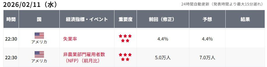 市場予想では、1月の非農業部門雇用者数は7万人増と、直近4カ月で最も強い伸びになると見込まれており、失業率は4.4%で横ばいとの見通しです。