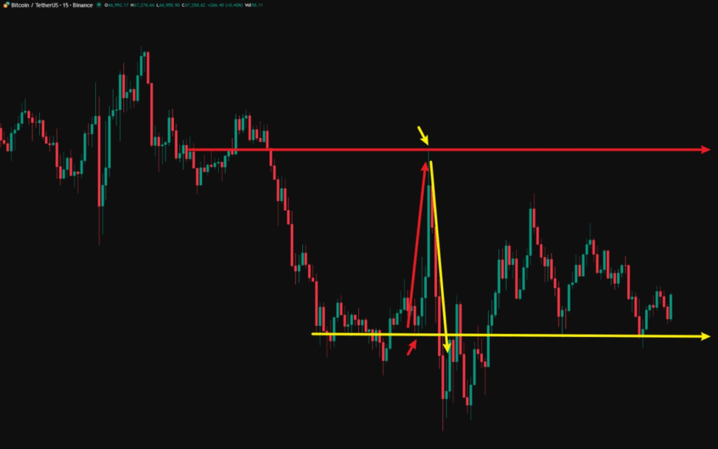 経済指標が発表された後、相場は1,952ドル上昇して68,834ドルに達した後に反落し、その後は売り優勢となり、価格は一気に65,756ドルまで急落しました。