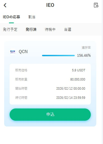 皆さんはすでにQCN上場による大きな利益獲得のチャンスを手にしており、あとは最終的な上場価格と当選状況にご注目いただくだけです。