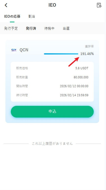 また、新コイン「QCN」の申込進捗バーが100%を超え、これをどのように捉えるべきでしょうか?
