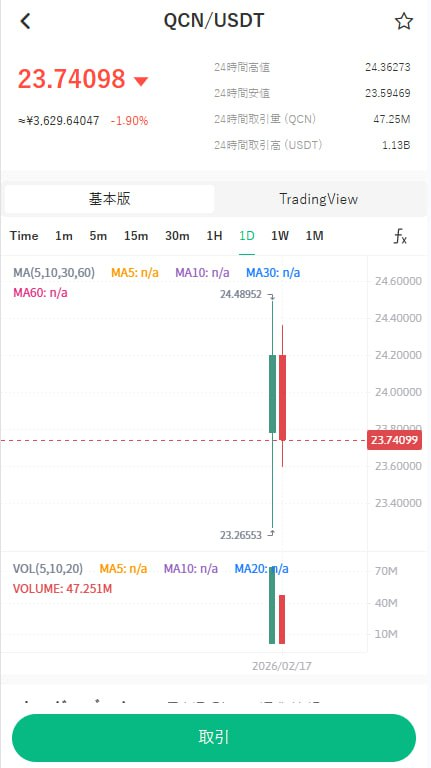 実際、QCNの上場時には価格が23.78USDTをつけ、一時24.48 USDTにまで達しました。