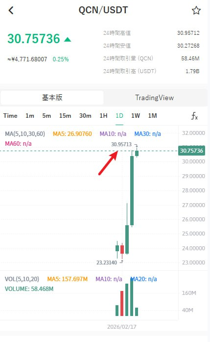 新コインQCNは、2月16日にZentara取引所へ上場後、大幅な上昇を見せています。