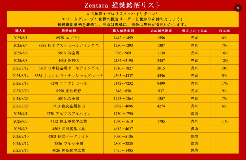 ご覧いただいている推奨銘柄リストのとおり、直近の8月は利益がほぼ倍増という成果を上げました。