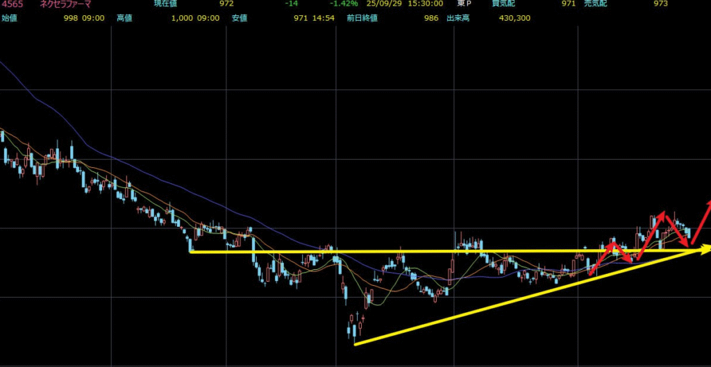 例を挙げましょう。直近の医薬株で言えば、4565 ソーセイグループや 4502 武田薬品工業の株価は下落しました。これは相場全体の弱さに加え、トランプ氏による医薬品関税引き上げ報道の影響を受けたためです。