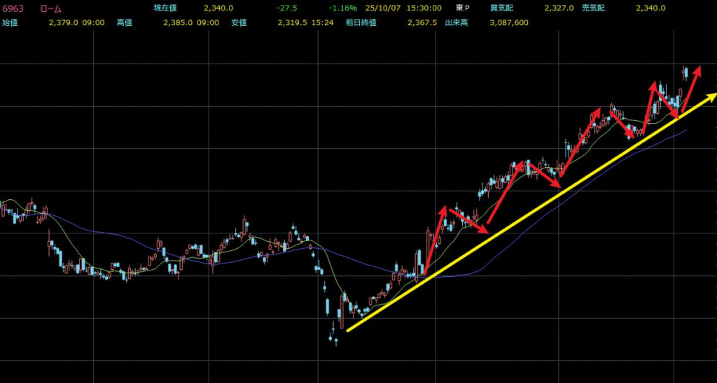 もし上昇トレンドにある銘柄を選んだのであれば、そのトレンドの中でより大きな利益を得るためには、高く売って安く買う(高売り・安買い)ことを身につける必要があります。