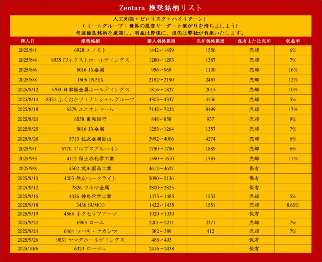 最近ご紹介している銘柄はいずれも堅調で、継続的に利益が出ています。日経平均株価が史上最高値を更新し、市場センチメントも一段と改善する中、本日も多くのメンバーから「いまはどの銘柄を買えばよいか」とアシスタントへお問い合わせをいただきました。
