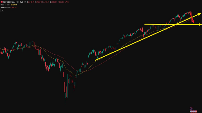 現在、S&P500は上昇トレンドを割り込んでおり、今後3営業日以内にトレンドラインを明確に回復できなければ、さらなる調整圧力に直面する可能性があります。