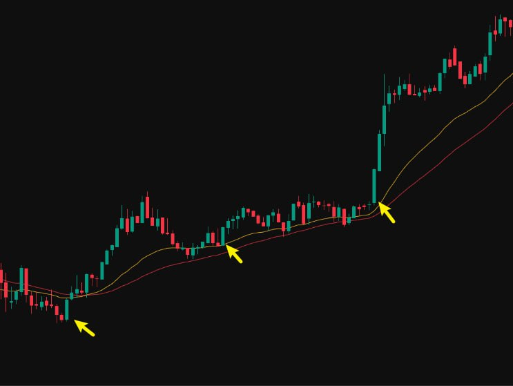 上昇トレンドの途中で一時的に調整した後、大陽線が出る場合は、機関投資家の“売り崩し”が終わったサインであり、上昇再開の合図となることが多いです。