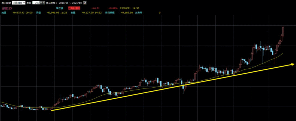 2012年末から、日経平均は長期にわたる上昇トレンドに入りました。