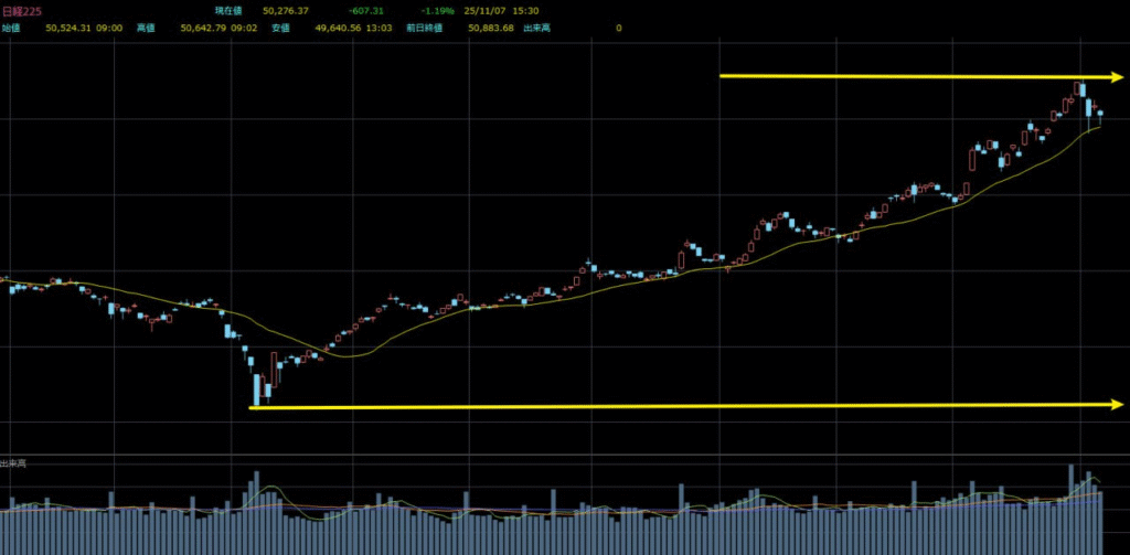 同時に、日銀の利上げ観測も徐々に強まり、日本株は下落サイクルに入りやすい局面と言えます。