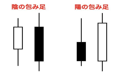 多くは高値圏での反転初期に現れやすく、陰の包み足は下落シグナルとして解釈されます。