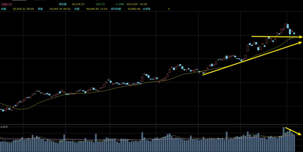 米国のテック株では高バリュエーションを背景にした売りが拡大し、その流れが日本国内の半導体・人工知能関連セクターにも素早く伝播しました。